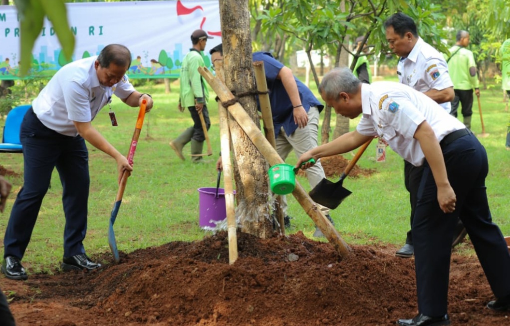 Penanaman pohon digiatkan dalam rangka mengikuti rangkaian penanaman pohon bersama Presiden Republik Indonesia, Joko Widodo dan Pj Gubernur Provinsi DKI Jakarta, Heru Budi Hartono bertajuk Taman Pohon Bersama Birukan Langit Jakarta, di Hutan Kota JIEP, Jakarta Timur.
