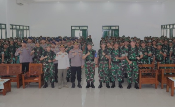 Kasrem 052/Wrk Kolonel Inf Dr.Indarto Kusnohadi S.I.P., S.H., M.H., M.M., memberikan sambutan bagi peserta Latihan Terintegritas Penyiapan Pengamanan Pilkada Tahun 2024 yang bahagia.