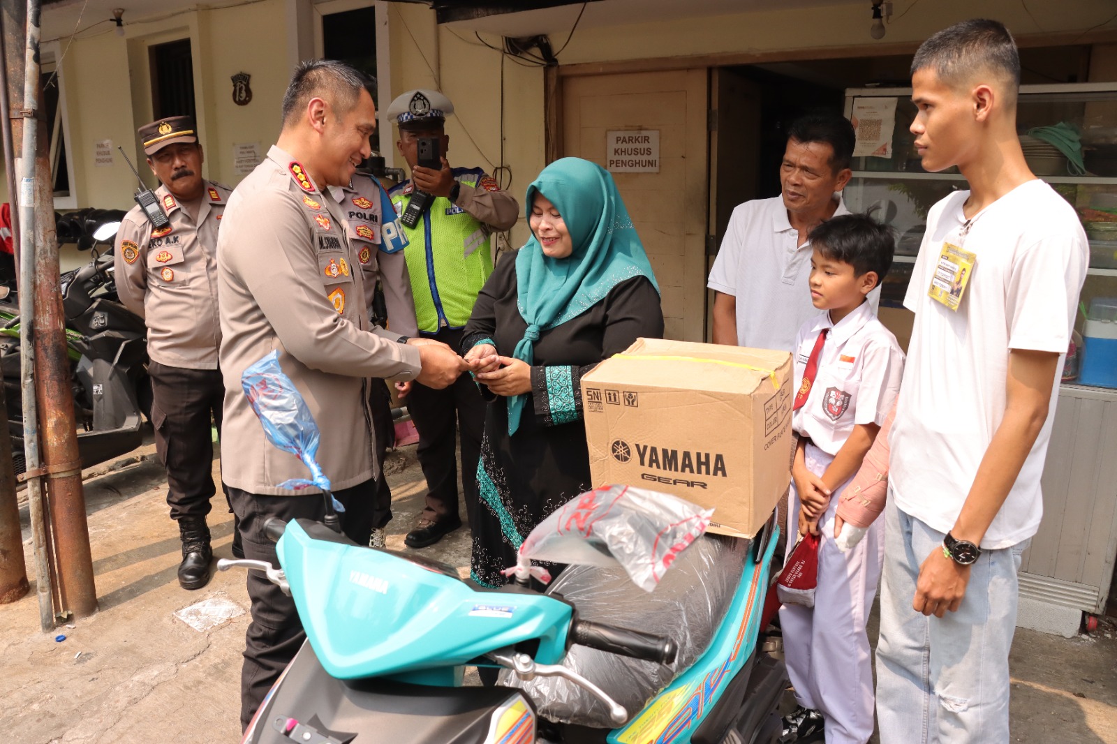Kombes Pol M Syahduddi memberikan satu unit sepeda motor Yamaha jenis Gear sebagai bentuk perhatian dan dukungan.