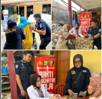 Sorotkeadilan.id – KOTA BEKASI, Bhakti Kesehatan Polri, Polres Metro Bekasi Kota menyambangi Slum area Jl Palem 3, RT.03/05 Harapan Mulya, kecamatan Medan Satria pada Senin (20/05/24)