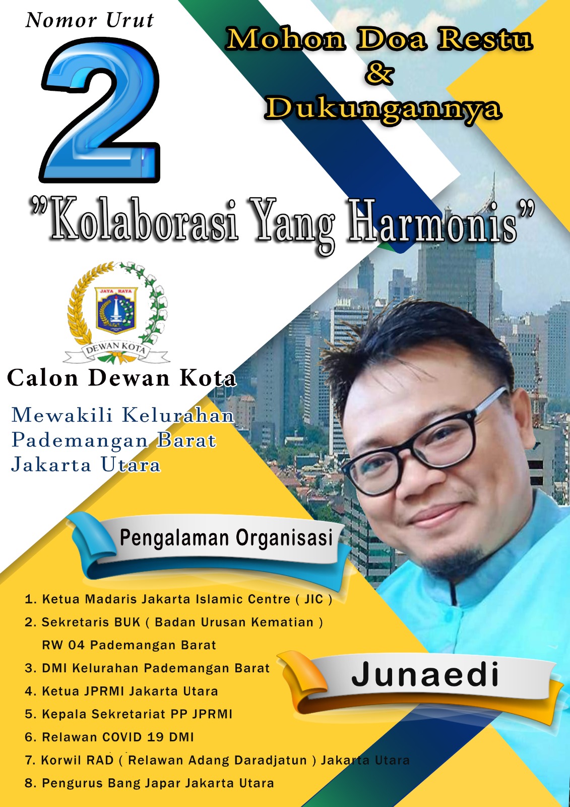 Calon Dewan Kota yang satu ini masuk di pencalonan Kelurahan Pademangan Barat, Junaedi mengungkapkan mengikuti proses seleksi melalui tahapan yang telah ditentukan PPK Kelurahan Pademangan Barat dan saat ini terdaftar 4 calon yang ada di kelurahan Pademangan Barat.