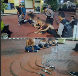 Dalam kejadian tersebut, sebanyak delapan remaja berhasil diamankan oleh tim Patroli bersama lima buah celurit panjang yang digunakan dalam tawuran.