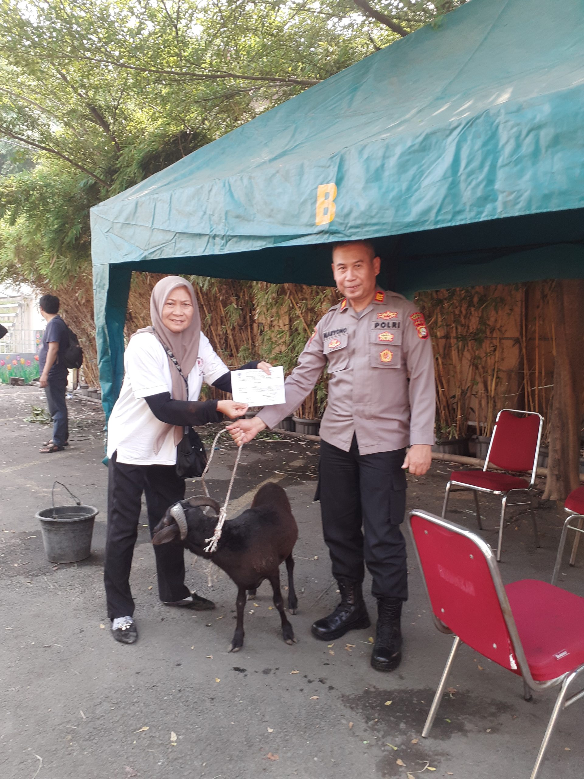 Aliansi Wartawati Indonesia mendapat satu ekor hewan qurban berupa kambing untuk disembelih dan dibagikan kembali kepada awak media serta masyarakat duafa di sekitar, yang diserahkan oleh