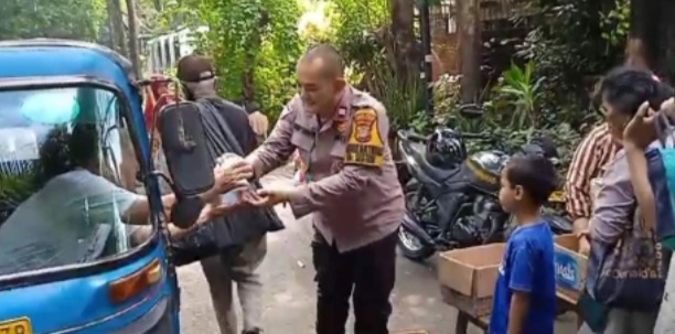Kemudian Roby membagikan 100 bungkus untuk makan siang warga kurang mampu, pengemudi bajaj serta pengemudi ojek online