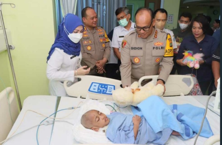 Sorotkeadilan.id – Jakarta, Kapolres Metro Jakarta Utara, Kombes Pol. Gidion Arif Setyawan beserta jajaran menjenguk dua anak, NRA (6) dan MAA (4) korban kekerasan oleh ibu tirinya di Rumah Sakit Umum Daerah (RSUD) Koja, Rabu (18/9).