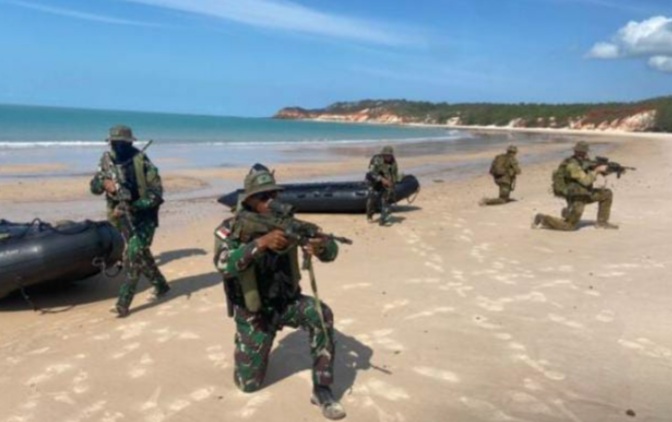 Sorotkeadilan.id – Kalbar, Australia Sebanyak 25 prajurit Hiu Petarung TNI AL dari Batalyon Infantri 3 Marinir di bawah pimpinan Komandan Kompi (Danki) Kapten Mar Adam Keulana, S.Tr.(Han)., melaksanakan latihan pendaratan Amfibi di Pulau Bathrust, Australia, Selasa (5/11/2024).
