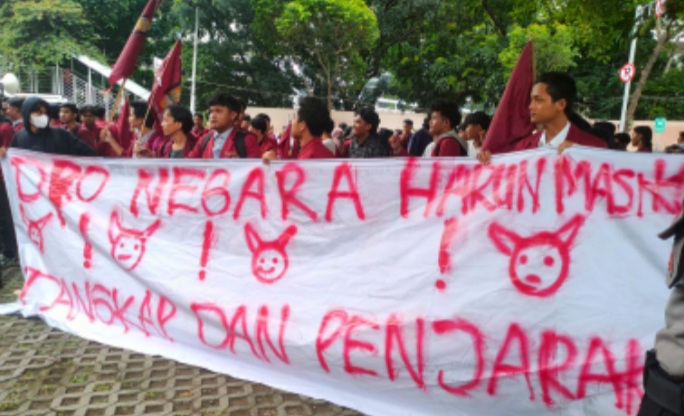 Dalam aksinya, para mahasiswa membawa spanduk bertuliskan “Kawal KPK RI Sampai Tuntas” dan “DPO Negara Harun Masiku, Tangkap dan Penjarakan”. Sambil berorasi, mereka menyerukan agar KPK dan kepolisian segera bertindak.