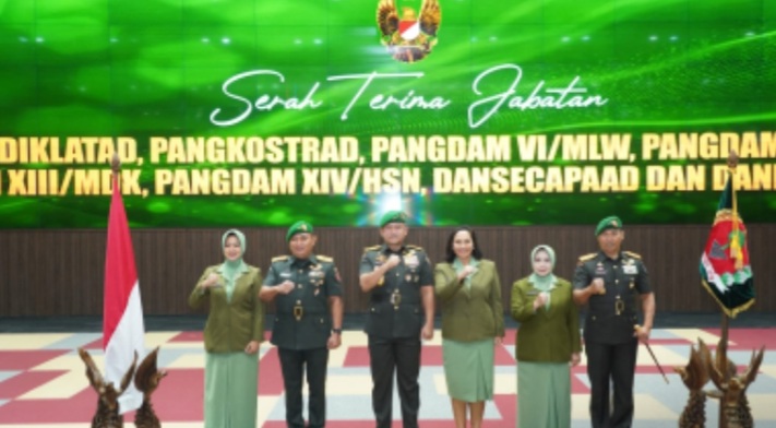 Dalam kesempatan tersebut, Kasad juga memimpin Sertijab terhadap tujuh pejabat tinggi lainnya di lingkungan TNI Angkatan Darat, diantaranya Dankodiklatad, Pangkostrad, Pangdam VI/Mulawarman, Pangdam XII/Tanjungpura, Pangdam XIII/Merdeka, Dansecapaad dan Danpusintelad. (Diana)