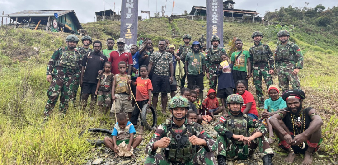 Sorotkeadilan.id – Puncak Jaya, Pos Talilime Satgas Pamtas Kewilayahan Yonif 715/Mtl dalam rangka memperingati hari Natal 2024 melaksanakan Gotong royong dan makan bersama guna mempererat tali silaturahmi antara personel Pos dengan masyarakat sekitar Pos Talilime Distrik Mulia Puncak Jaya, Papua Tengah, Senin (30/12/2024).