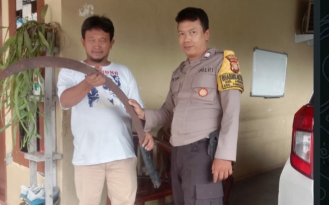 Sorotkeadilan.id – Kota Bekasi, Kepolisian Resor Metro Bekasi Kota terus menggalakkan sosialisasi dan imbauan kamtibmas untuk mencegah tawuran remaja. Upaya ini membuahkan hasil positif dengan meningkatnya kesadaran masyarakat untuk menjaga keamanan dan ketertiban. Pada Selasa, 4 Februari 2025, Bhabinkamtibmas Kelurahan Jatimurni, Brigadir Galih Kuntho Aji, menerima penyerahan sebuah celurit dari Bapak Herman, Ketua RT 03 RW 04 Kelurahan Jatimurni, Kecamatan Pondok Melati.