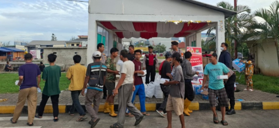 Kapolsek menjelaskan bahwa program Berbagi Makanan Untuk Sesama dalam Jumat Berkah ini, sebagai bentuk kepedulian Polsek Kawasan Muara Baru kepada masyarakat pekerja di Pelabuhan Muara Baru.