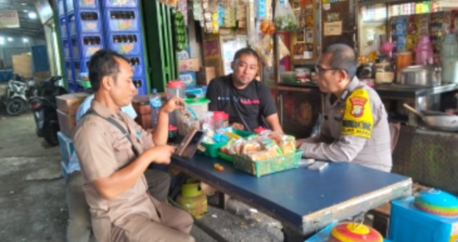 Sorotkeadilan.id – Kota Bekasi, Bripka Deddy Lesmana Situmorang, Bhabinkamtibmas Kelurahan Jatiwarna, meningkatkan kegiatan patroli di Pasar Kecapi, Kota Bekasi, sebagai upaya antisipasi gangguan keamanan dan ketertiban masyarakat (Guantibmas). Patroli yang dilaksanakan pada pukul 12.30 WIB ini bertujuan untuk memberikan rasa aman dan nyaman bagi pengunjung serta pedagang pasar.(17/2/25)