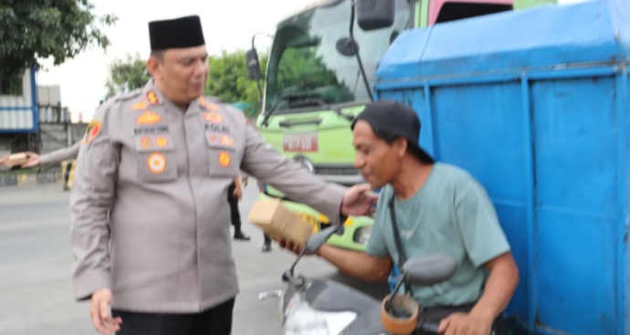 Sorotkeadilan.id – Jakarta, Dalam semangat berbagi di bulan suci Ramadhan penuh berkah dan ampunan, Kapolres Pelabuhan Tanjung Priok, AKBP Dr. Martuasah H. Tobing, S.I.K., M.H., bersama jajarannya membagikan takjil kepada para pengguna jalan di Pelabuhan Tanjung Priok. Kegiatan ini merupakan bentuk kepedulian Polres Pelabuhan Tanjung Priok terhadap masyarakat yang masih dalam perjalanan saat waktu berbuka puasa tiba, Minggu sore.