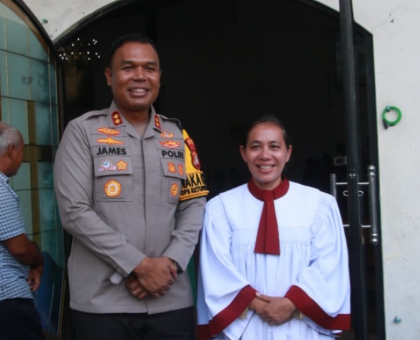 Hadir dalam kegiatan ini, Wakapolres Metro Jakarta Utara AKBP James Hutajulu, S.IK, SH, MH, M.IK, didampingi sejumlah pejabat utama Polres dan Polsek Koja. Kehadiran mereka disambut hangat oleh para pengurus gereja dan ratusan jemaat.