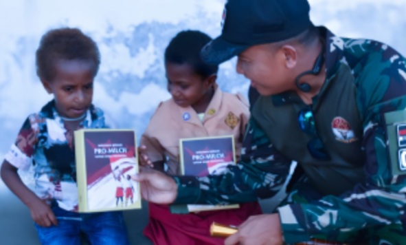 Kegiatan ini dilakukan di sela-sela kunjungannya untuk meninjau program TMMD di Kampung Pigapu, dengan harapan dapat membantu pemenuhan asupan gizi anak-anak serta menumbuhkan semangat kebersamaan antara TNI dan masyarakat. Anak-anak pun tampak antusias dan senang menerima susu yang dibagikan, yang menjadi simbol perhatian dan kasih sayang dari TNI. Sabtu (10/5/2025).