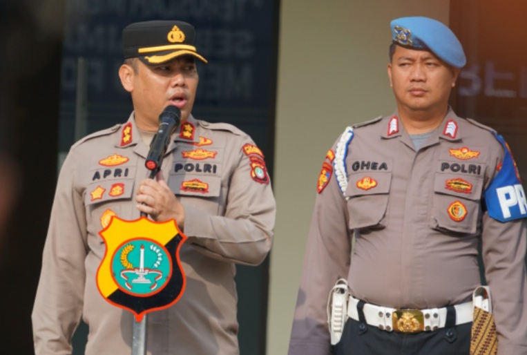 Apel berjalan dengan tertib dan khidmat sebagai bagian dari rutinitas dalam menjaga disiplin dan koordinasi antar anggota Polri di lingkungan Polres Metro Bekasi.(Amril leni)