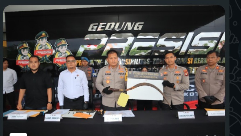 Sorotkeadilan.id – Bekasi Kota, Kapolres Metro Bekasi Kota Kombes Pol Kusumo Wahyu Bintoro, S.H., S.I.K., M.H., didampingi Wakapolres AKBP Bayu Pratama Gubunagi, S.H., S.I.K., M.Si., Kasat Reskrim AKBP Braiel Arnold Rondonuwu, dan Kasi Humas AKP Suparyono menggelar konferensi pers pengungkapan kasus pencurian dengan pemberatan (Curat) kendaraan roda dua di Lobi Mapolres, Senin (3/11/2025).