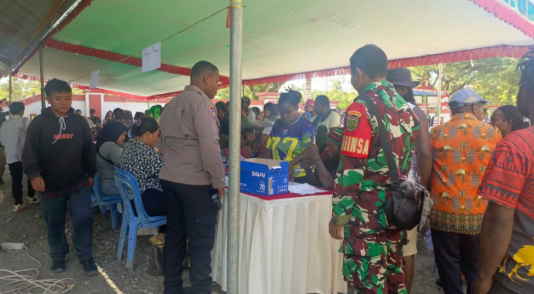 Sorotkeadilan.id – Timika, Guna memastikan proses penyaluran berjalan dengan lancar dan tepat sasaran, Babinsa Koramil 1710-03/Kuala Kencana dipimpin Pelda Tori Suwandi melaksanakan pendampingan penyaluran bantuan pemerintah, Bantuan Langsung Tunai Sementara Kesejahteraan Rakyat (BLTS Kesra) TA 2025 kepada masyarakat yang berhak menerima bertempat di Kantor Distrik Iwaka, Kab. Mimika, Rabu (26/11/2205).