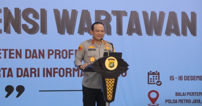 Kegiatan tersebut digelar di Gedung Balai Pertemuan Polda Metro Jaya, Jakarta Selatan, yang diselenggarakan pada 15-16 Desember 2025 dengan tajuk ‘Jurnalis Kompeten dan Profesional untuk Jaga Jakarta dari Informasi Palsu’.